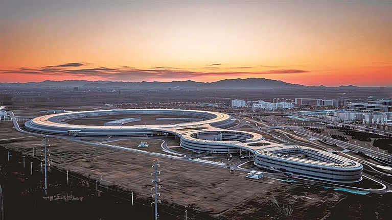 晨光下的北京怀柔科学城重大科技基础设施高能同步辐射光源。新华社发